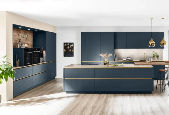 De trends voor moderne keukens in 2024 spelen in op een combinatie van nostalgische details en moderne innovaties. Koperen elementen zoals kranen, knoppen en accessoires brengen een vleugje nostalgie in de keuken en combineren prachtig met zowel matte als hoogglans afwerkingen. Natuursteen, zoals marmeren of natuurstenen aanrechtbladen, blijft geliefd vanwege de luxe uitstraling en duurzaamheid. Een ouderwetse schouw met ingebouwde afzuigkap biedt een moderne twist aan een klassiek ontwerp, terwijl een groot fornuis met ingebouwde oven niet alleen functioneel is, maar ook als eyecatcher fungeert. Deze mix van trends zorgt voor een unieke, eigentijdse keuken die zowel stijlvol als praktisch is.