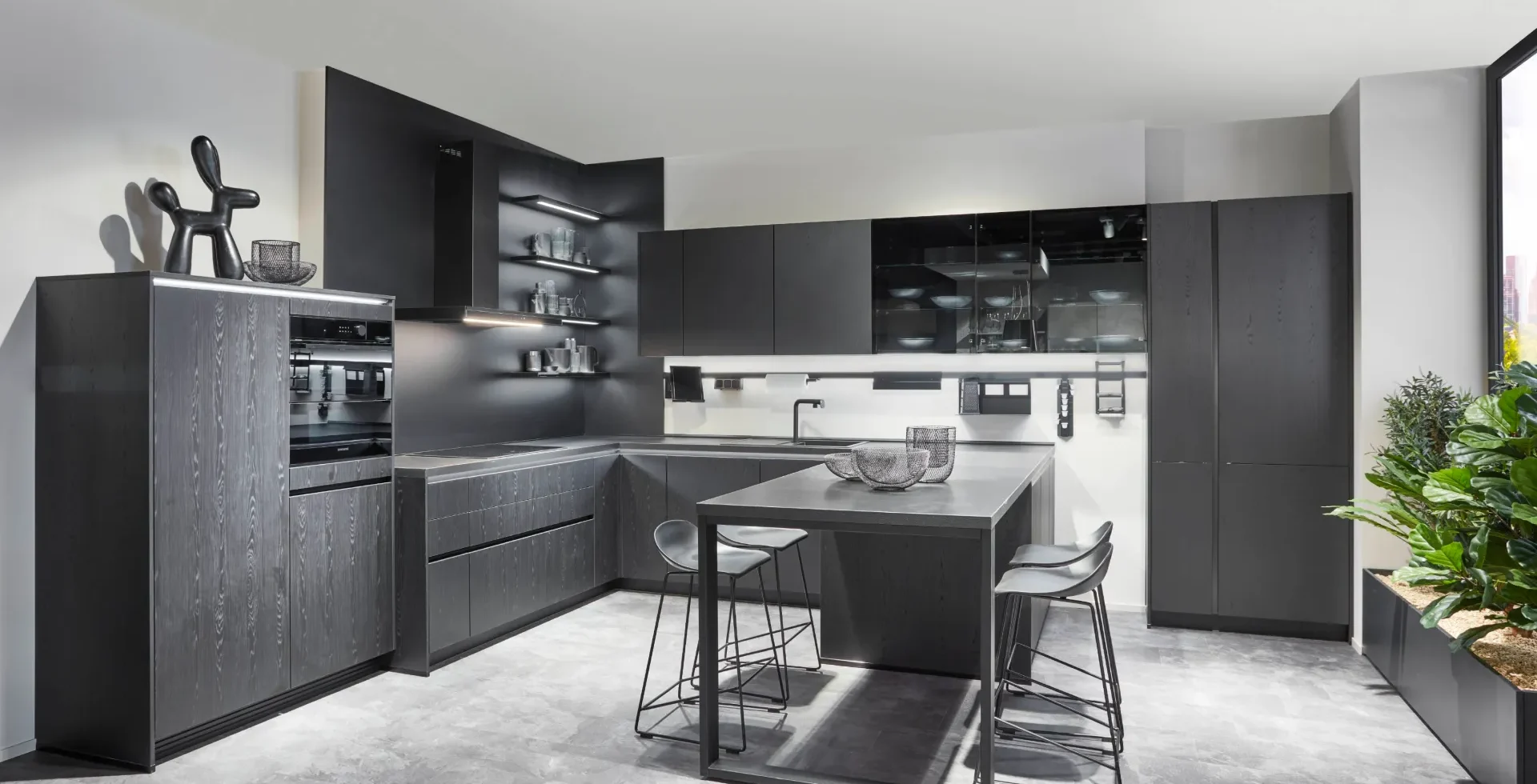 De keuken van nu draait om eenvoud, functionaliteit en slimme integratie van natuurlijke elementen. Zwart, wit en grijs zetten de toon in moderne keukens, terwijl aardetinten zoals taupe en beige voor een warme, tijdloze sfeer zorgen. Daarnaast winnen natuurlijke tinten zoals groen en blauw aan populariteit, doordat ze een frisse, ontspannen uitstraling geven en goed aansluiten bij de vraag naar natuurlijke materialen. Luxe materialen zoals marmer, hout en glas worden veelvuldig toegepast, waarbij marmer elegantie toevoegt en hout een warme, uitnodigende sfeer creëert. Qua afwerkingen zijn zowel matte als hoogglans opties geliefd, afhankelijk van de gewenste uitstraling: matte oppervlakken voor een rustige look, en hoogglans voor een modern accent. Minimalisme blijft een belangrijke trend, met strakke lijnen, opgeruimde oppervlakken en slimme opbergruimtes die een serene uitstraling bevorderen. Geïntegreerde apparaten en efficiënte oplossingen, zoals ladekasten en ingebouwde ovens, zorgen ervoor dat moderne keukens praktisch en stijlvol blijven.